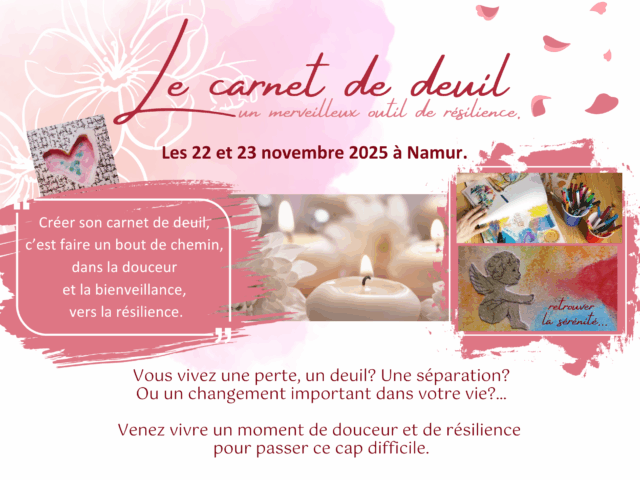 Le carnet de deuil © Un week end autour du carnet de deuil. Lors de ce we, je vous guiderai, pas à pas, en toute sécurité, à travers des exercices …